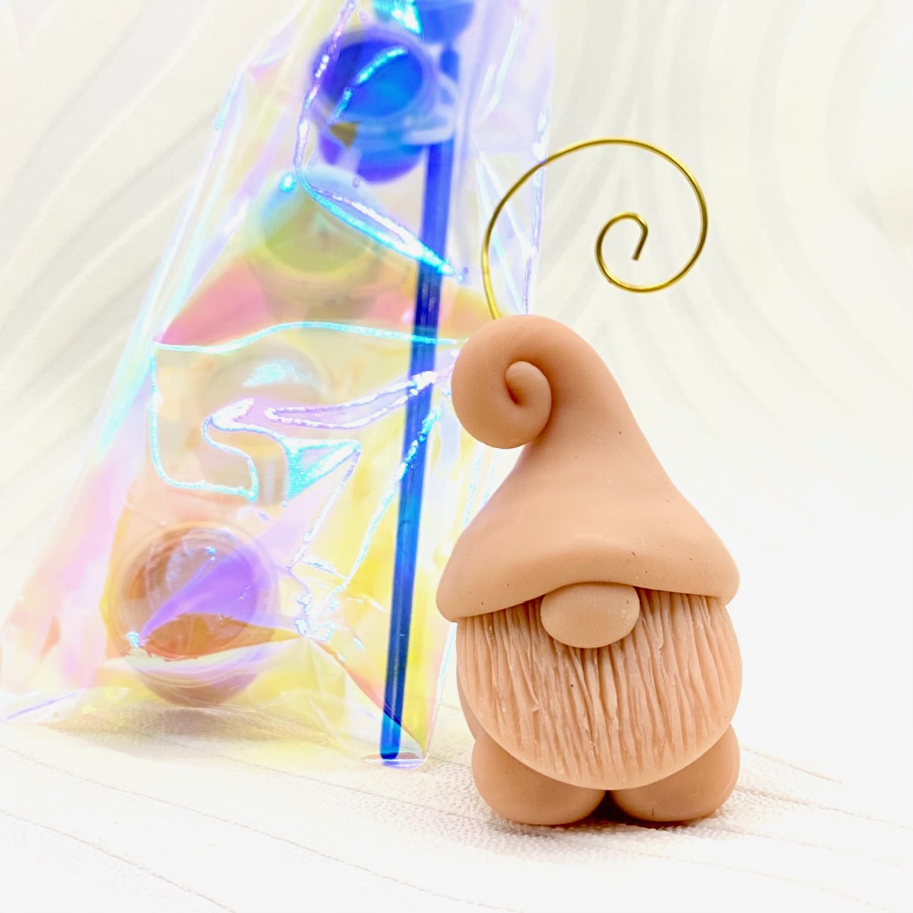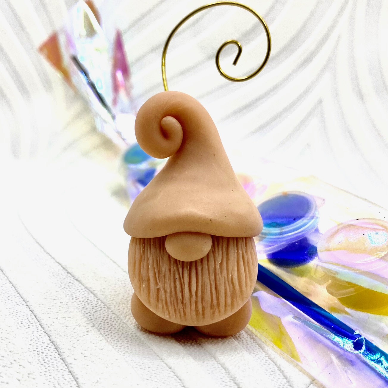 (1) Hand-sculpted polymer clay gnome keepsake (measures approx 2.5-3″